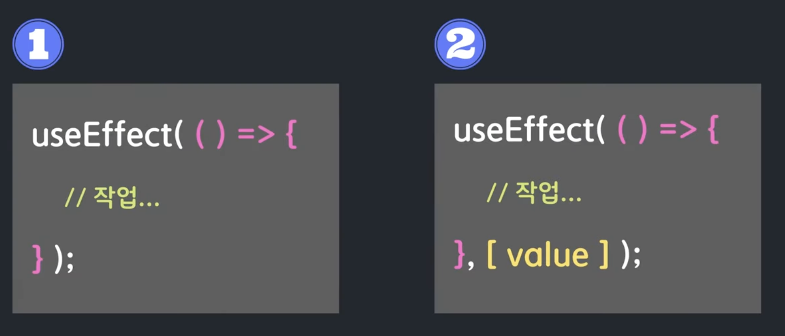 - ์ฒซ ๋ฒ์งธ ์ธ์๋ก ์ฝ๋ฐฑํจ์, ๋ ๋ฒ์งธ ์ธ์๋ก ๋ฐฐ์ด(dependencies)